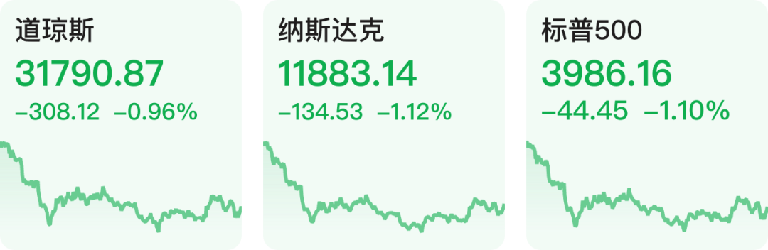 美东时间周二(8月30日),美股主要股指“三连跌”。标普500指数跌1.1%,报3986.16点;道指跌0.96%,报31790.87点;纳指跌1.12%,报11883.14点。盘面上,大型科技股全线走低,能源股疲软,中概股多数下跌,尚乘数科跌超24%,叮咚买菜跌超14%。
