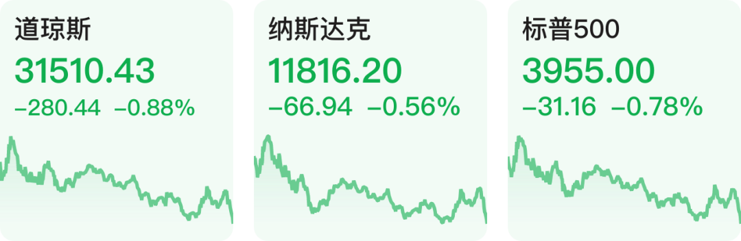 美股连续四日收跌。截至收盘,道琼斯指数跌0.88%,纳斯达克指数跌0.56%,标普500指数跌0.78%。盘面上,科技股多数下跌,银行股疲软,热门中概股多数走高。尚乘数科涨超14%,逸仙电商跌近12%,斗鱼涨超10%,欢聚集团涨超8%,拼多多、B站涨超7%。