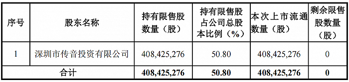 此次解禁涉及股东为深圳市传音投资有限公司一家,同样控股股东解禁,若不披露减持计划,则影响有限。