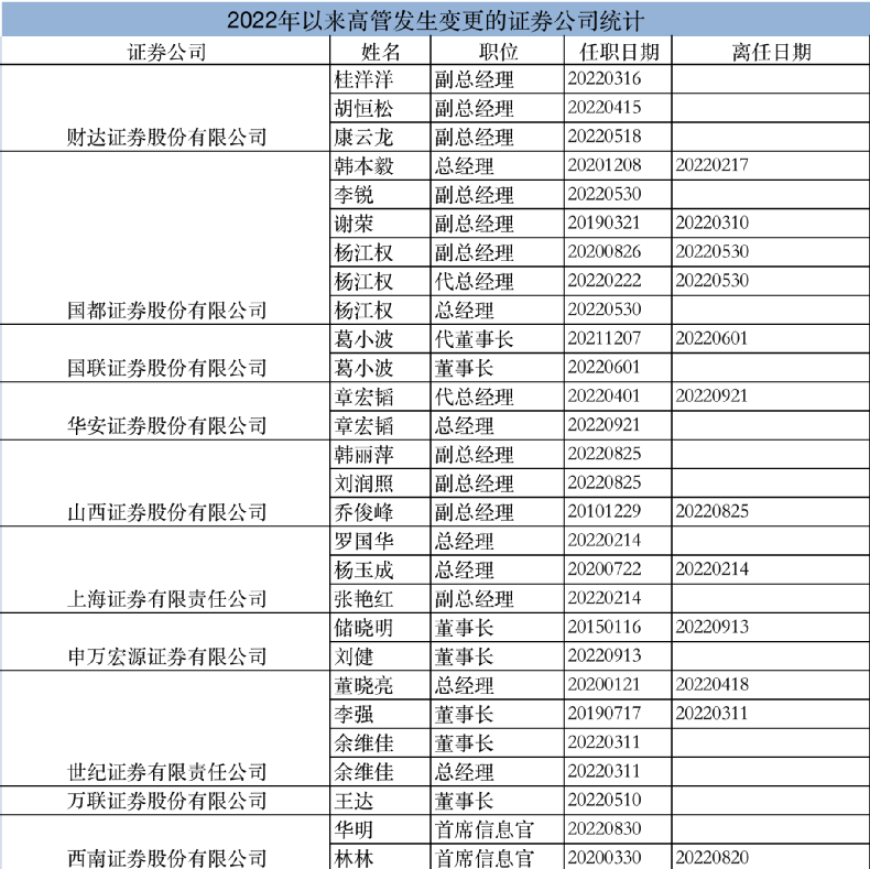 证券公司高管变动频现