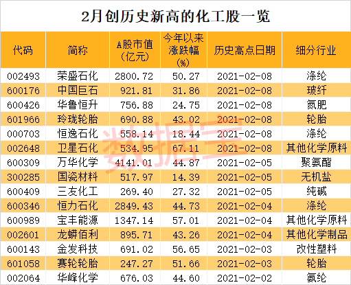 化工板块高歌猛进,6只龙头股创新高