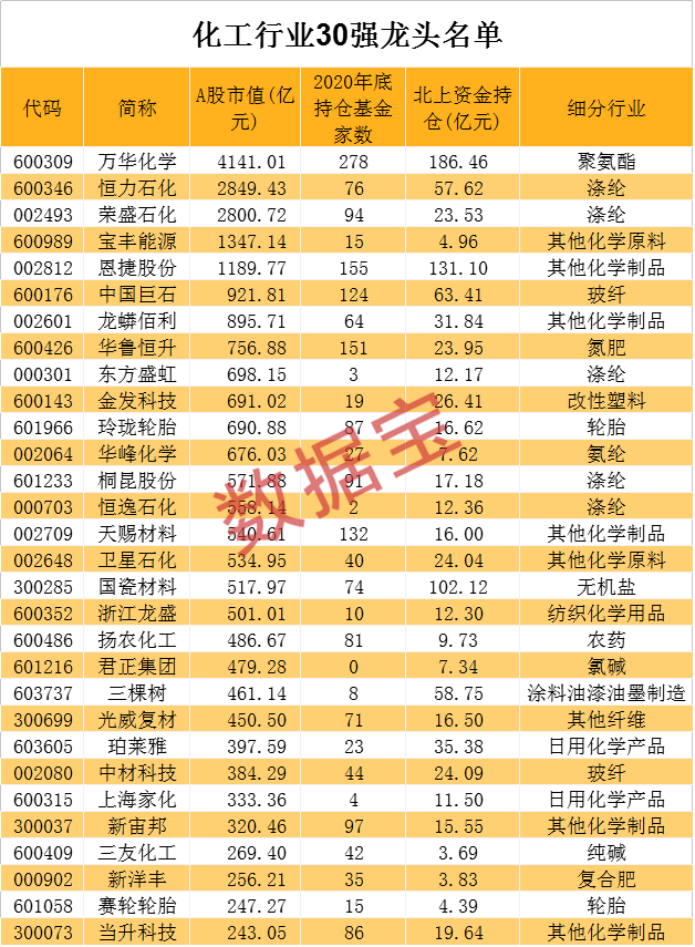 化工龙头股名单出炉,北上资金重仓980亿