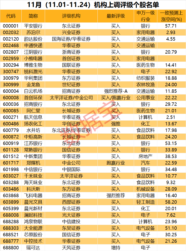 感恩节之际,数据宝呈现一份近期机构评级股名单。因为有了机构,A股这个还算年轻的资本市场更加有效率,感恩股市一路有你。