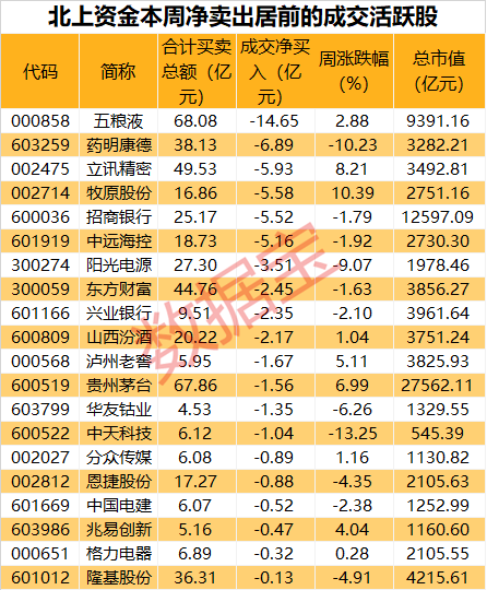 本周食品饮料净卖出最多,五粮液净卖出14.65亿元。