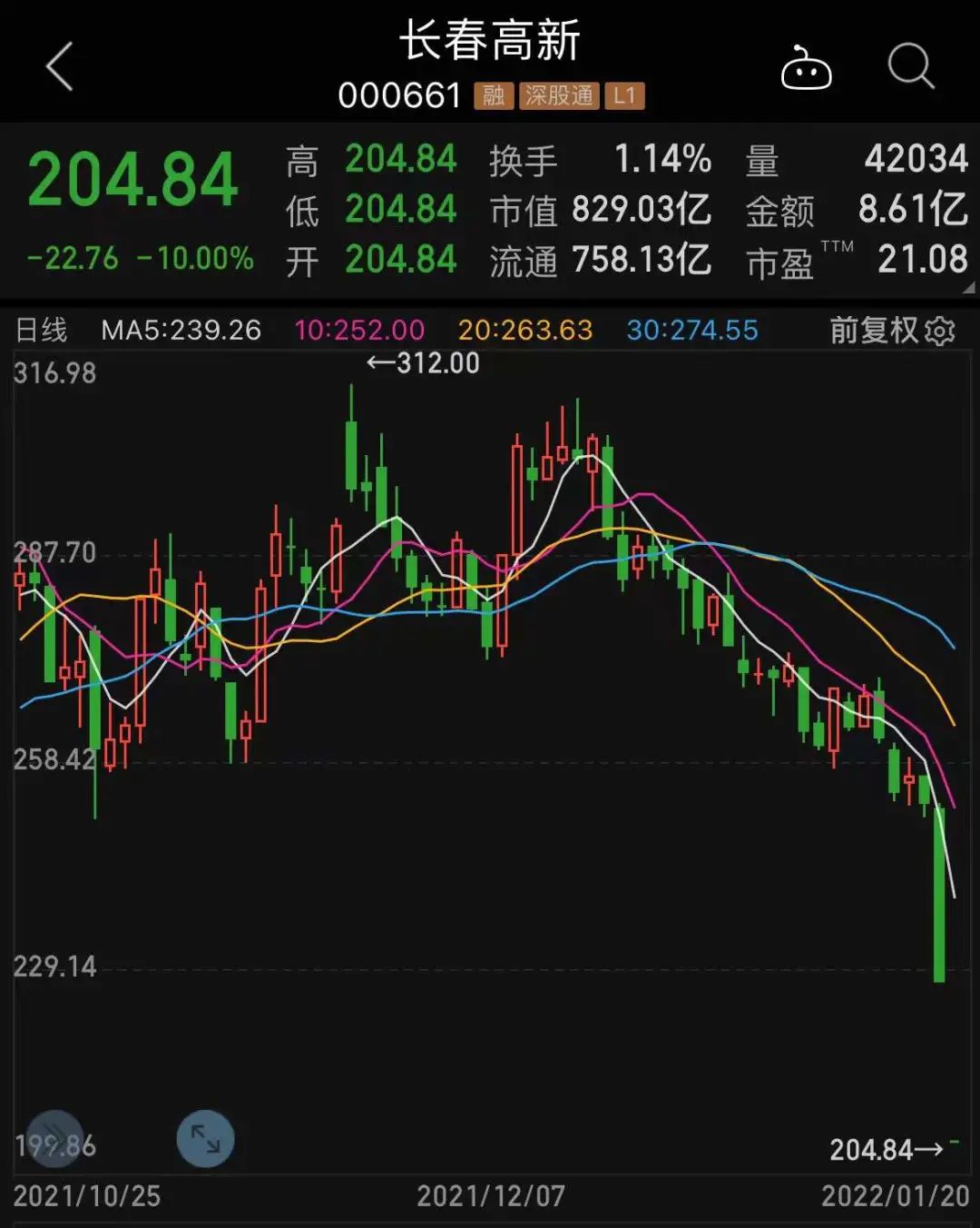 长春高新连续跌停,机构2天大笔抛售2.5亿