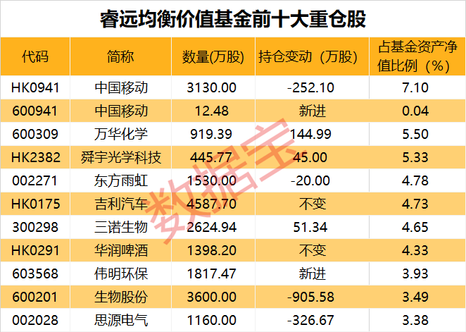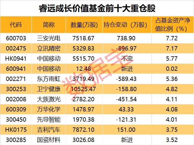 睿远基金披露四季报,最新重仓股曝光。