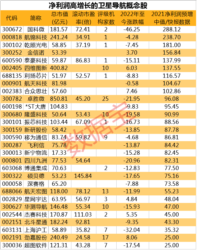 证券时报·数据宝梳理了净利润增幅逾25%的卫星导航概念股名单。市场表现方面,29股自新年以来平均下跌10.66%,仅劲嘉股份、合众思壮、四维图新、杰赛科技等4股涨逾5%;上海沪工和国科微回撤居前,幅度均超30%。