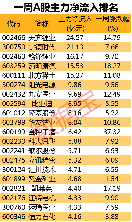 净流入方面,5股获主力10亿元以上加仓。赛道股本周重新回归,锂电板块的天齐锂业、宁德时代、赣锋锂业,以及药明康德、北方稀土、比亚迪、隆基股份等赛道龙头主力加仓额度居前。节后电池级碳酸锂价格连续上涨,站稳40万元/吨,锂电上游成本压力进一步上涨。数据显示,2021年全球动力电池装机总量297GWh,同比增长102%。光大证券表示,一季度锂电需求景气度维持高位,估值方面也已经过回调,竞争格局好的细分赛道龙头值得关注。(数据宝 张智博)