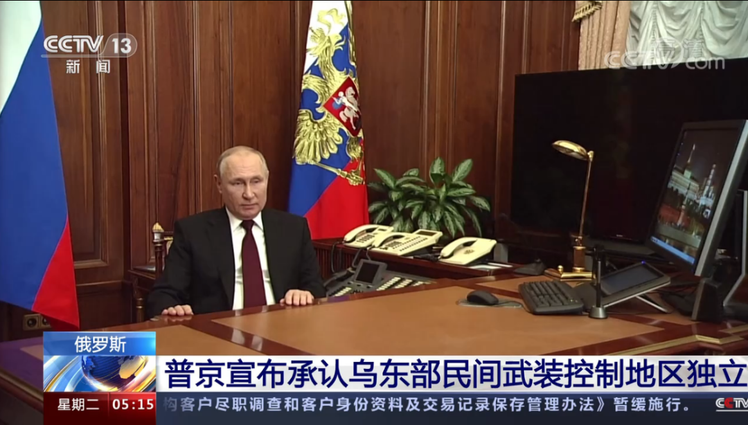 今天凌晨,俄罗斯总统普京签署总统令承认顿涅茨克人民共和国和卢甘斯克人民共和国,并签署俄罗斯与顿涅茨克人民共和国和卢甘斯克人民共和国的友好合作互助条约。