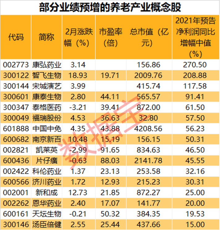 养老产业股本月以来普遍上涨,16只概念股2021年度净利润预增。