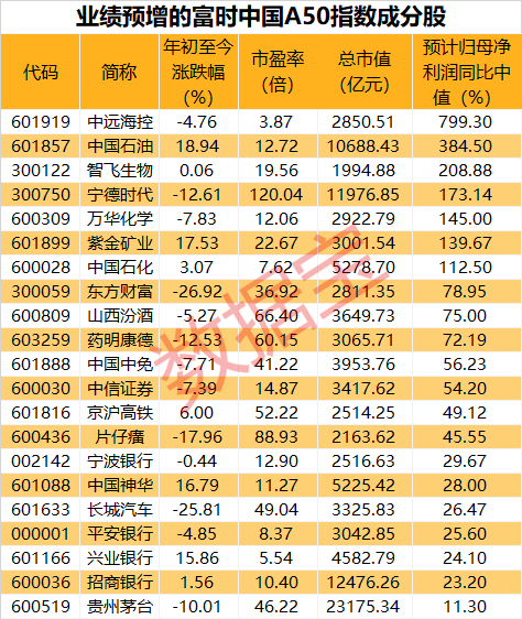 统计显示,成份股中已有24股公布2021年度业绩预告或业绩快报,其中21股预增,净利润预计增幅中值来看,中远海控、中国石油、智飞生物预计增幅居前,分别为799.3%、384.5%、208.88%。