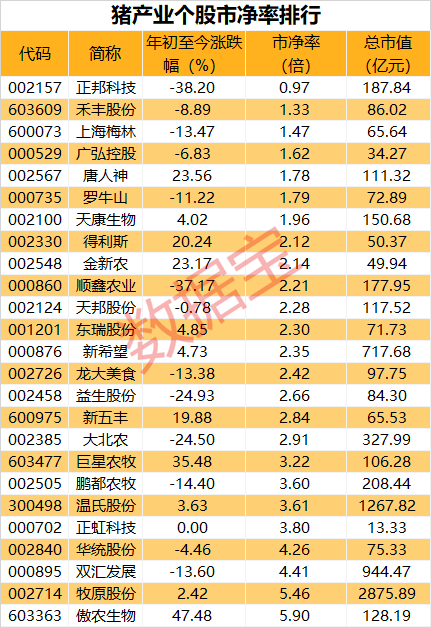 低市净率猪产业股名单出炉