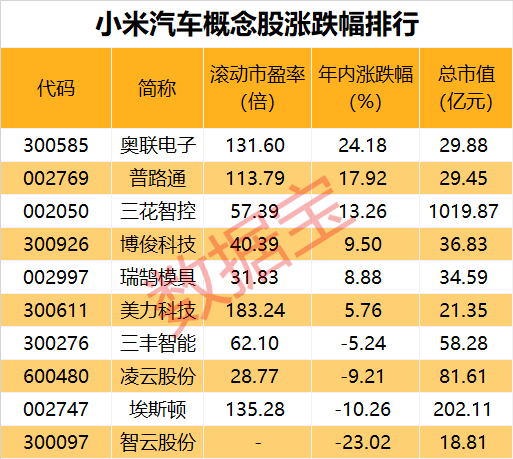 三花智控表示公司正积极推进与小米的合作。瑞鹄模具表示公司正与小米汽车积极接洽中。凌云股份表示,公司在紧密关注小米汽车公司动态。