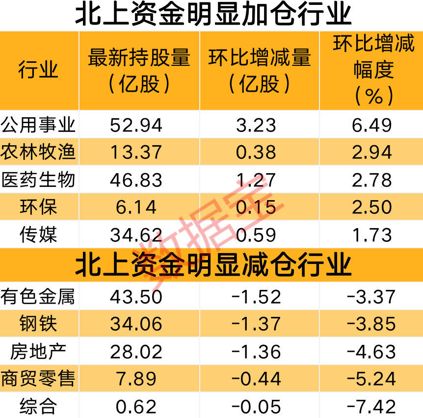 分行业来看,本周北上资金加仓风格未出现明显变化,公用事业、医药生物行业获北上资金长期增仓,稳增长板块如房地产、钢铁仓位调整,持股量降幅超过3%,其他还有商贸零售、有色金属、美容护理持股量降幅居前。