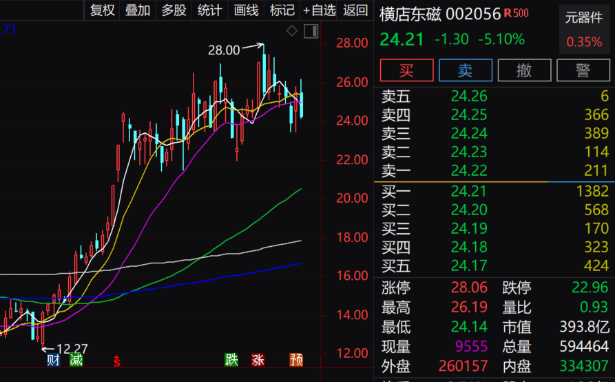 横店东磁概念众多,囊括了时下火爆的光伏、锂电、储能、稀土等题材。公司业绩股价齐飞,预计上半年净利润7.65亿元-8.47亿元,同比增长40%-55%。公司股价年内大涨近30%,近期创历史新高。