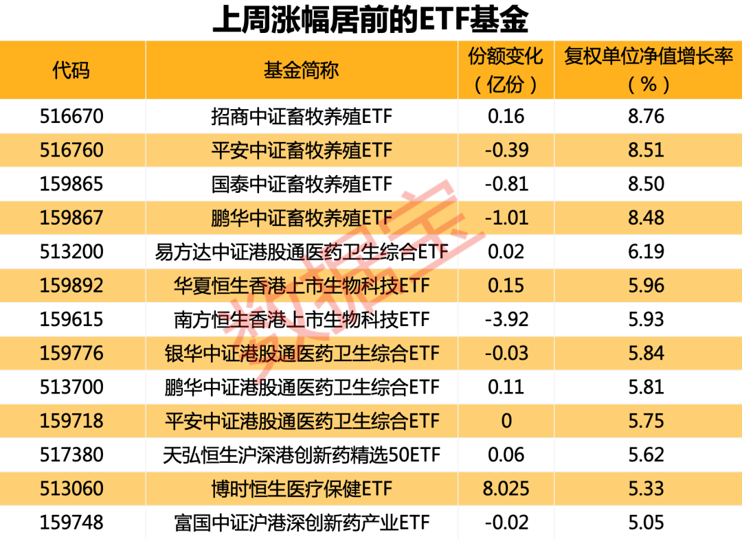 养殖类ETF净值涨幅霸榜
