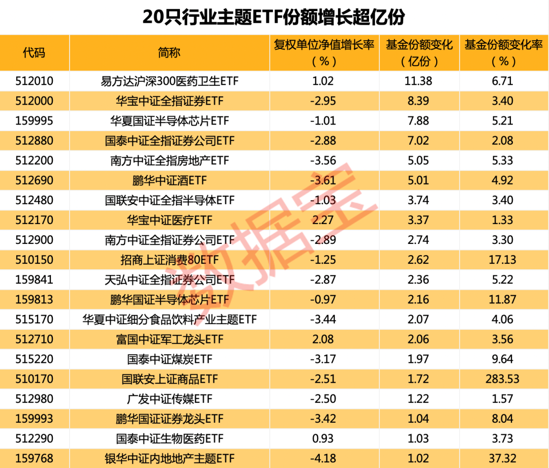 医药类ETF持续获加仓,宽基ETF出现高抛