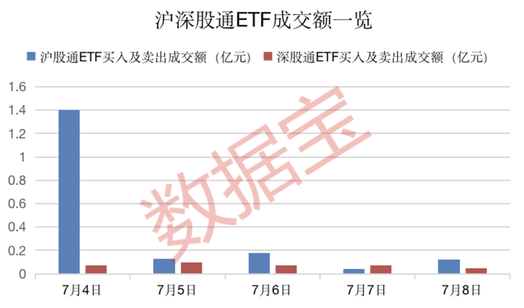 据港交所数据,互联互通开闸以来,ETF沪股通、深股通的买入及卖出分别累计成交1.87亿元和0.36亿元。