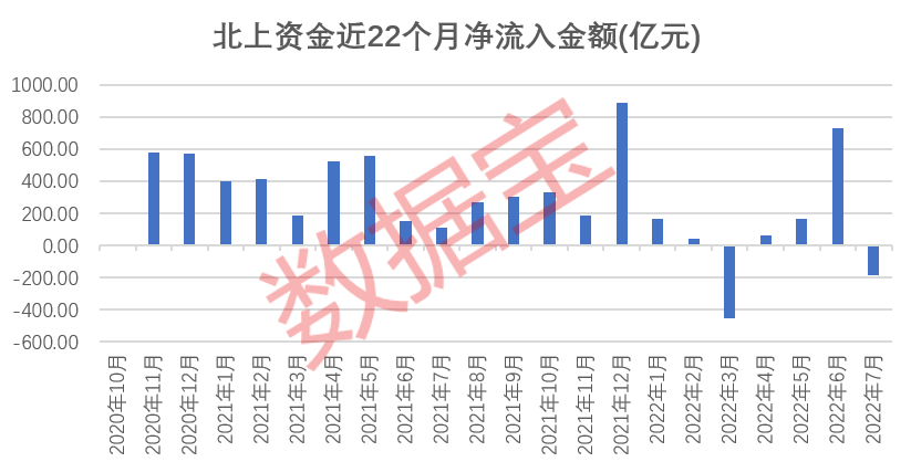 北上资金7月份的活跃度环比有所下降,流出额创近22个月以来次高水平。