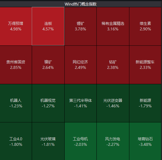 今日早盘,三大指数集体低开后震荡上扬。盘面上,电力、种植、养殖、VR板块表现强势,一些前期热门的光伏、风电、机器人、汽车零部件赛道今日热度有所退潮,相比之下,民爆、广电、免税店等一些非市场热门的板块于早盘拉升。