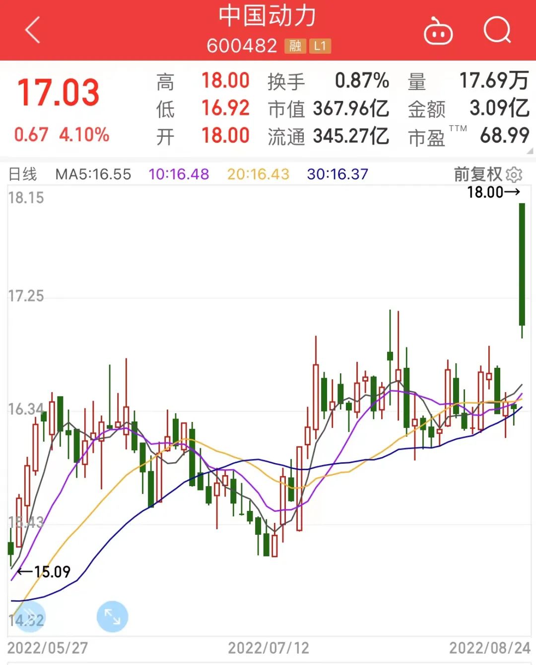 在此消息影响下,今天早盘中国动力开盘触及涨停。截至上午收盘,该股上涨4.1%。船舶板块整体表现不佳,亚星锚链、中国船舶等多只个股跌逾4%。
