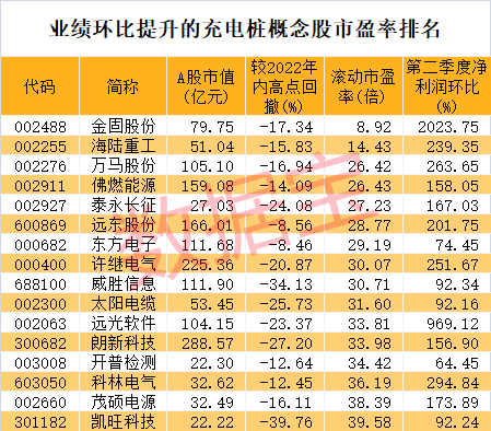 证券时报·数据宝统计,按照半年报、快报、预告净利润下限计算,上半年净利润增长的充电桩概念股有50只。京泉华、金固股份、煜邦电力、中天科技、安洁科技等5股净利润增速均在300%以上。