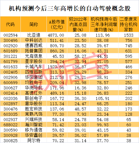 自动驾驶概念股研发强度超A股,高增长潜力名单出炉