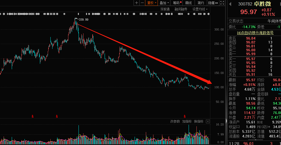 随着半导体周期回落,卓胜微股价见顶,并进入漫漫熊途。截至最新收盘,卓胜微股价不足百元,相比巅峰期340元左右(前复权)跌逾70%。在下跌过程中,尤其是今年大跌过程中,诺安成长可谓是越跌越买,并最终实现举牌。