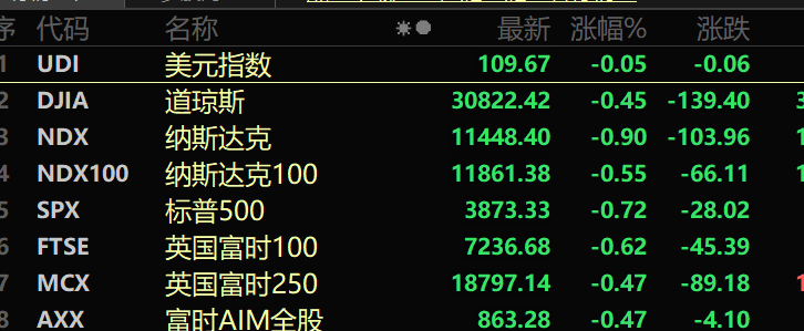 世界银行和国际货币基金组织的警告加剧了投资者对经济放缓的担忧,同时快递巨头FedEx发布盈利预警引发了经济陷入滞胀的担忧。美股周五维持颓势,截至收盘,道指跌0.45%,标普500指数跌0.72%,纳指跌0.90%。