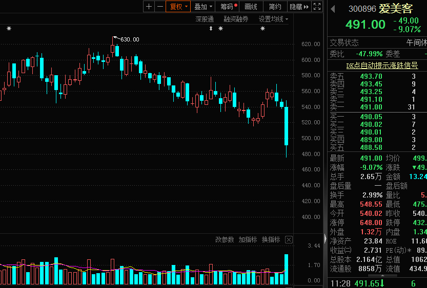爱美客放量大跌,创近一年盘中最大跌幅