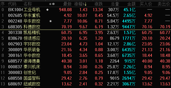 受工业机床等硬科技ETF快速获批消息影响,工业母机板块早盘异动拉升,截至发稿,华东数控、华东重机涨停,科德数控、明志科技等跟涨。