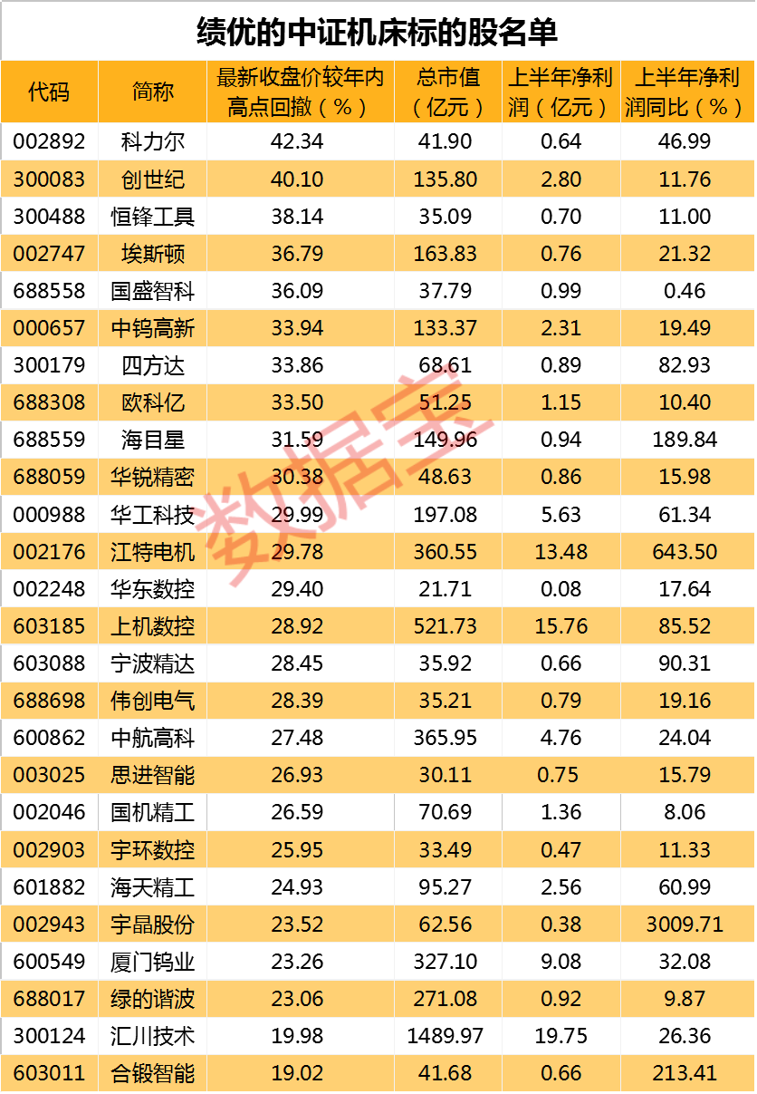 绩优的机床ETF跟踪标的股出炉