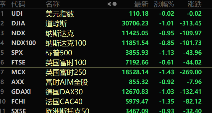 欧洲股市集体冲高回落,德国DAX30指数跌1.03%,英国富时100指数跌0.61%,法国CAC40指数跌1.35%。