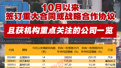 10月以来签订重大合同或战略合作协议 且获机构...