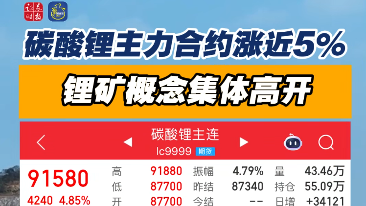 碳酸锂主力合约涨近5% 锂矿概念集体高开