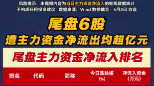 尾盘6股遭主力资金净流出均超亿元