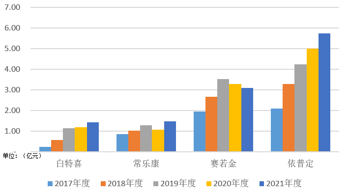 2017年-2021年主要产品销售收入