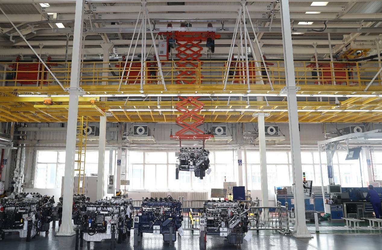 中国重汽“智能网联(新能源)重卡项目”重卡生产线实现了全自动化生产,更有诸多首创技术,车架全自动纵梁加工生产线和焊装生产线全自动化率达到100%;冲压生产线在国内商用车首次采用伺服压机+数控液压垫;总装生产线采用行业首创的无线非接触式供电技术。
