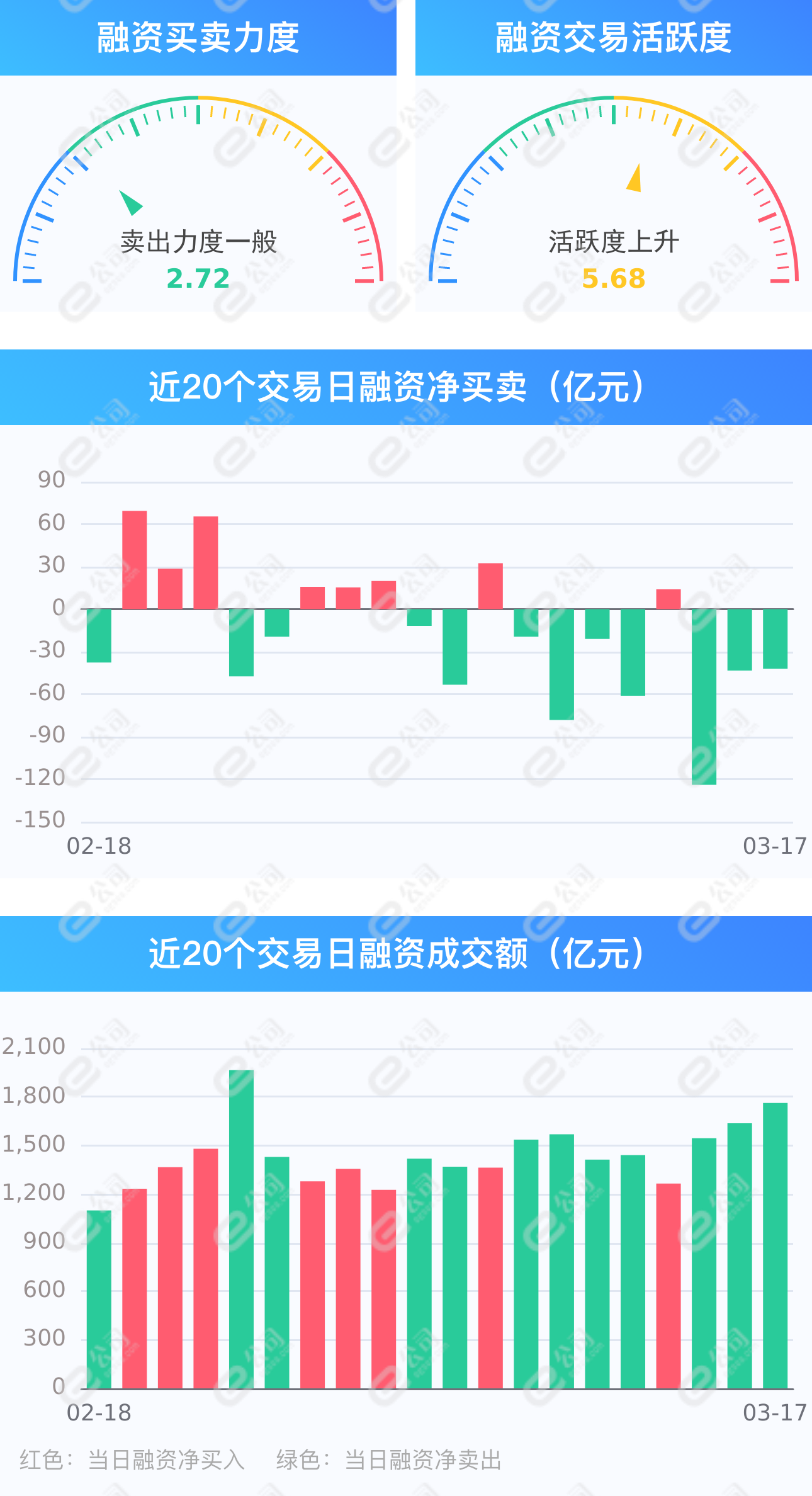证券时报e公司讯,截至3月17日,上交所融资余额报8436.97亿元,较前一交易日减少24.97亿元;深交所融资余额报7501.27亿元,较前一交易日减少17.07亿元;两市合计15938.24亿元,较前一交易日减少42.04亿元。