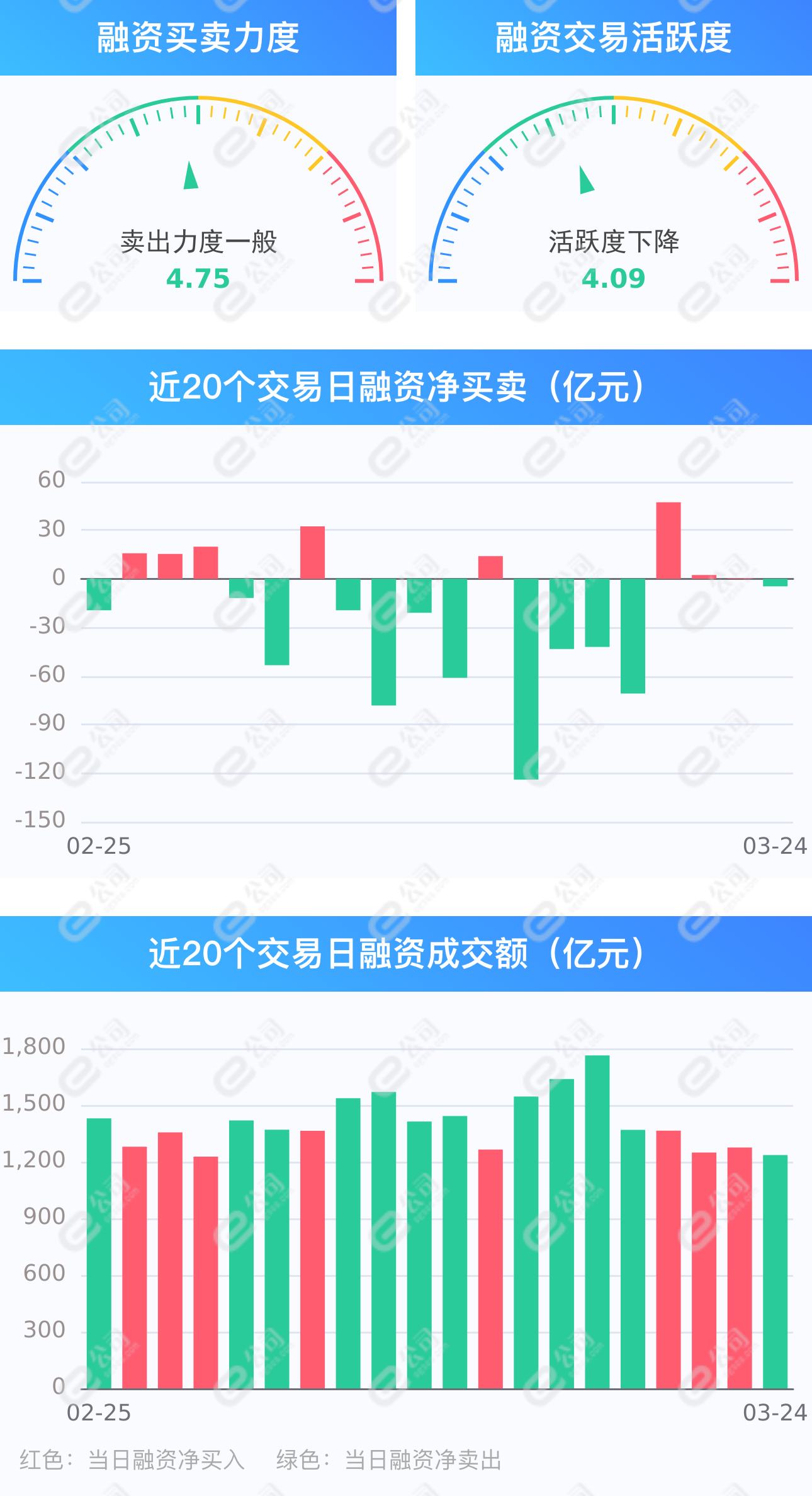 证券时报e公司讯,截至3月24日,上交所融资余额报8396.18亿元,较前一交易日减少7.15亿元;深交所融资余额报7516.60亿元,较前一交易日增加2.53亿元;两市合计15912.78亿元,较前一交易日减少4.62亿元,融资交易额1234.61亿元,占A股成交额13.51%,其中融资买入额614.99亿元,融资偿还额619.62亿元,交易活跃度下降3.16%。统计发现,融资客中止连续3日净买入。(此稿由证券时报e公司写稿机器人“快手小e”完成。)