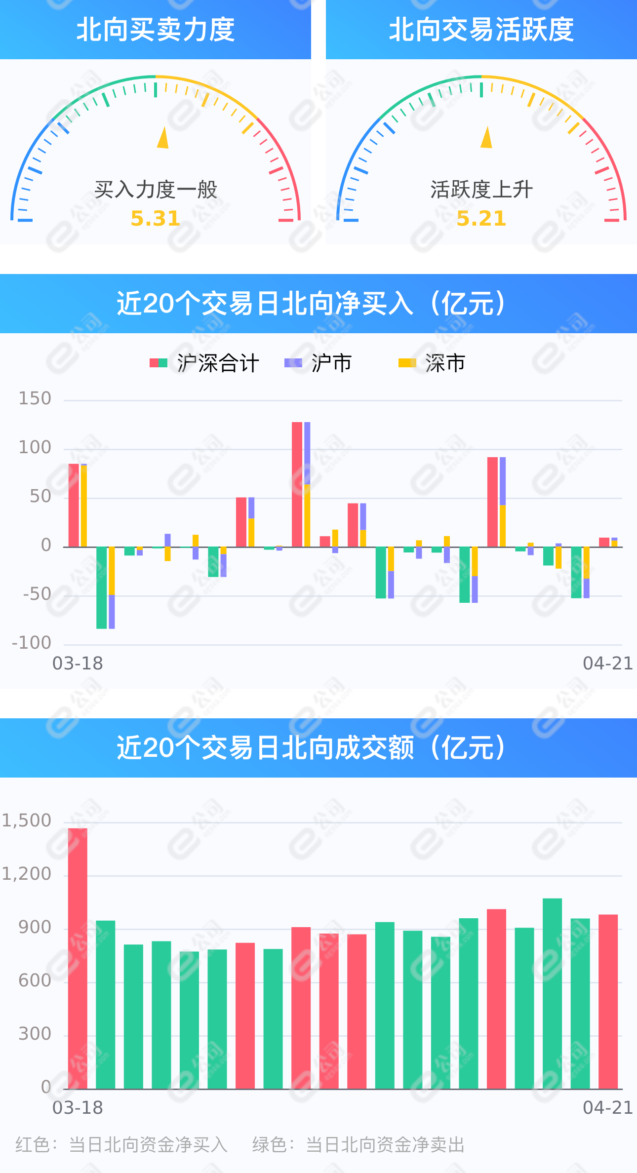 证券时报网讯,4月21日,截至A股收盘,统计数据显示北向资金合计净买入9.11亿元,其中沪股通净买入6.12亿元,深股通净买入2.99亿元。北向资金中止连续3日净卖出。