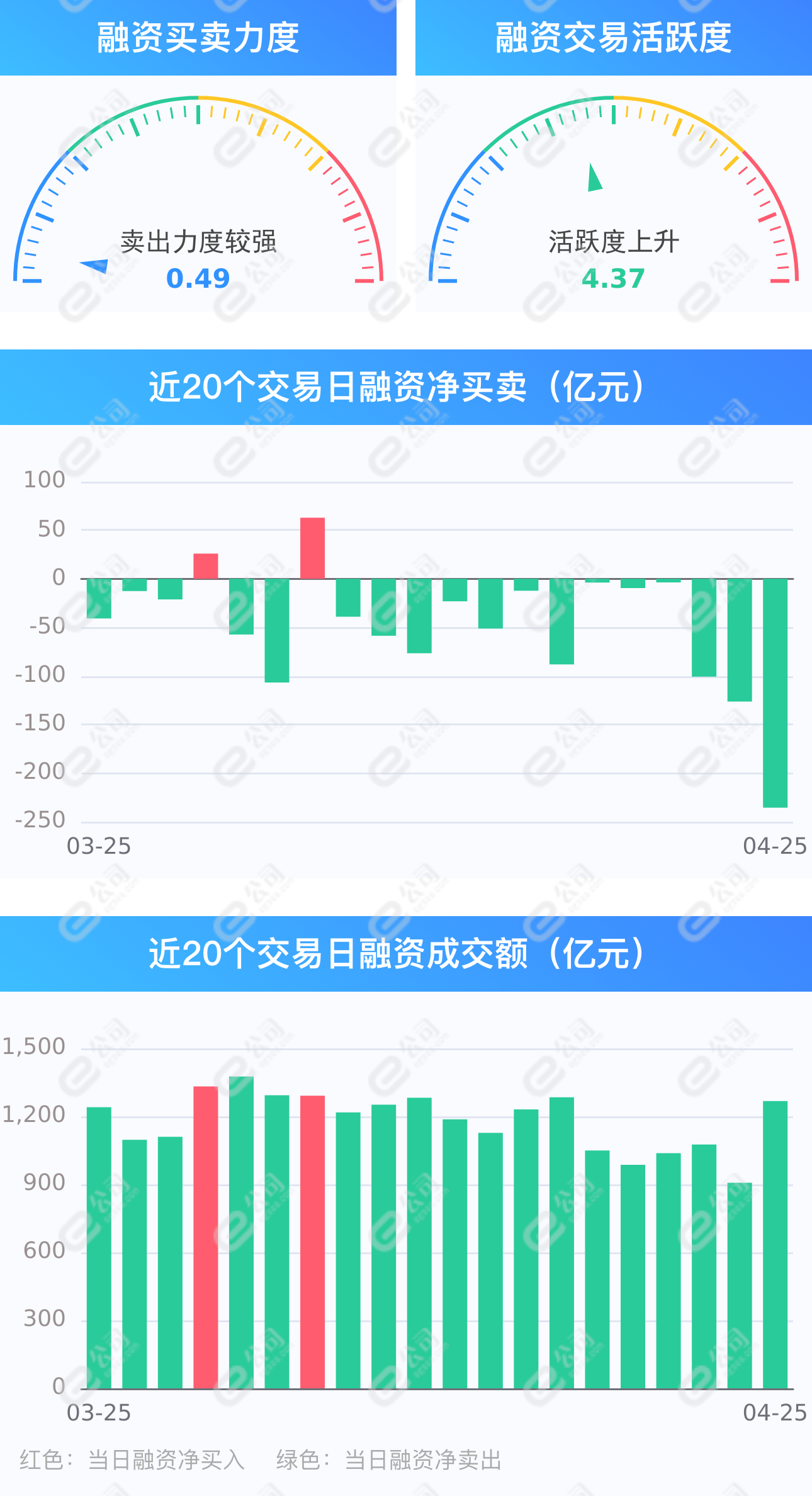 证券时报e公司讯,截至4月25日,上交所融资余额报7987.78亿元,较前一交易日减少93.11亿元;深交所融资余额报6946.68亿元,较前一交易日减少142.41亿元;两市合计14934.45亿元,较前一交易日减少235.52亿元。统计发现,融资客保持连续13日净卖出,合计828.60亿元。