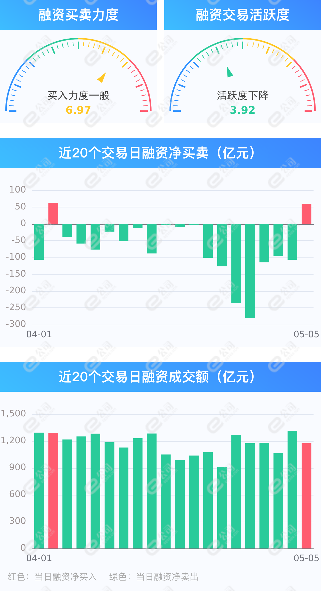 证券时报e公司讯,截至5月5日,上交所融资余额报7703.59亿元,较前一交易日增加19.74亿元;深交所融资余额报6693.97亿元,较前一交易日增加40.15亿元;两市合计14397.55亿元,较前一交易日增加59.88亿元,融资交易额1176.65亿元,占A股成交额13.14%,其中融资买入额618.26亿元,融资偿还额558.38亿元,交易活跃度下降10.45%。统计发现,融资客中止连续17日净卖出。