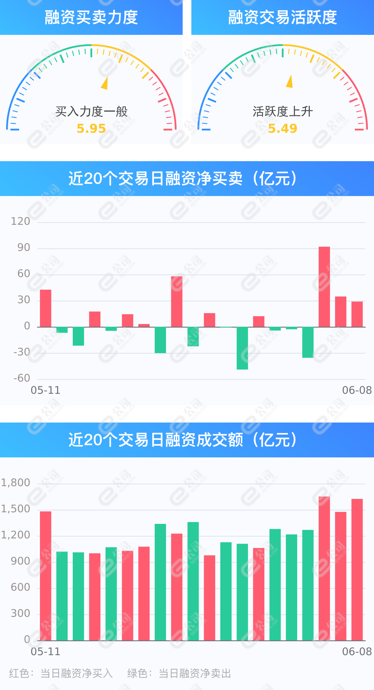 证券时报e公司讯,截至6月8日,上交所融资余额报7828.00亿元,较前一交易日增加7.13亿元;深交所融资余额报6734.40亿元,较前一交易日增加21.73亿元;两市合计14562.40亿元,较前一交易日增加28.85亿元,融资交易额1623.32亿元,占A股成交额14.81%,其中融资买入额826.09亿元,融资偿还额797.23亿元,交易活跃度上升10.14%。