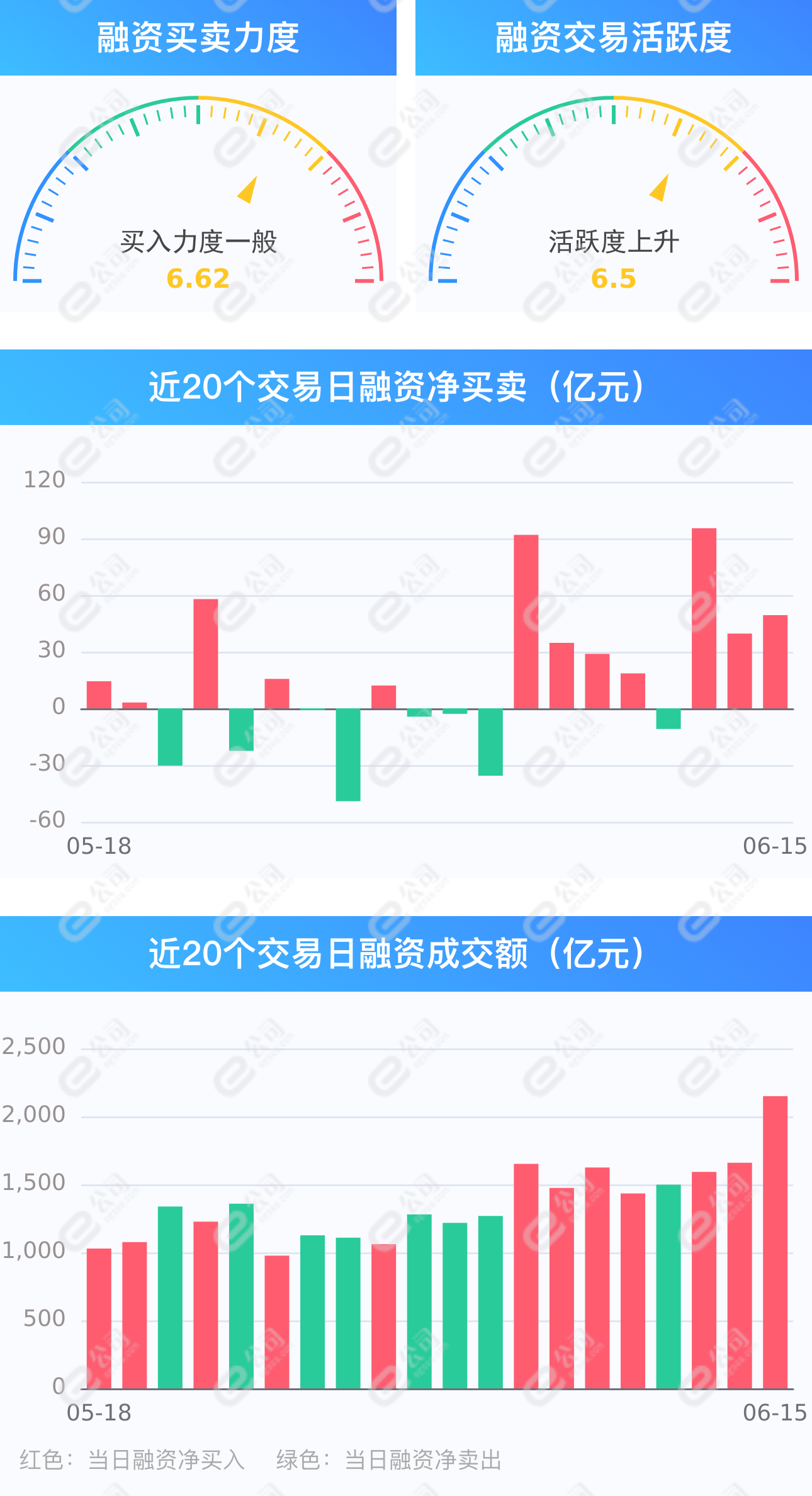 证券时报e公司讯,截至6月15日,上交所融资余额报7936.10亿元,较前一交易日增加30.03亿元;深交所融资余额报6818.14亿元,较前一交易日增加19.35亿元;两市合计14754.24亿元,较前一交易日增加49.37亿元,融资交易额2148.42亿元,占A股成交额16.62%,其中融资买入额1098.90亿元,融资偿还额1049.52亿元,交易活跃度上升29.53%。(此稿由证券时报e公司写稿机器人“快手小e”完成。)