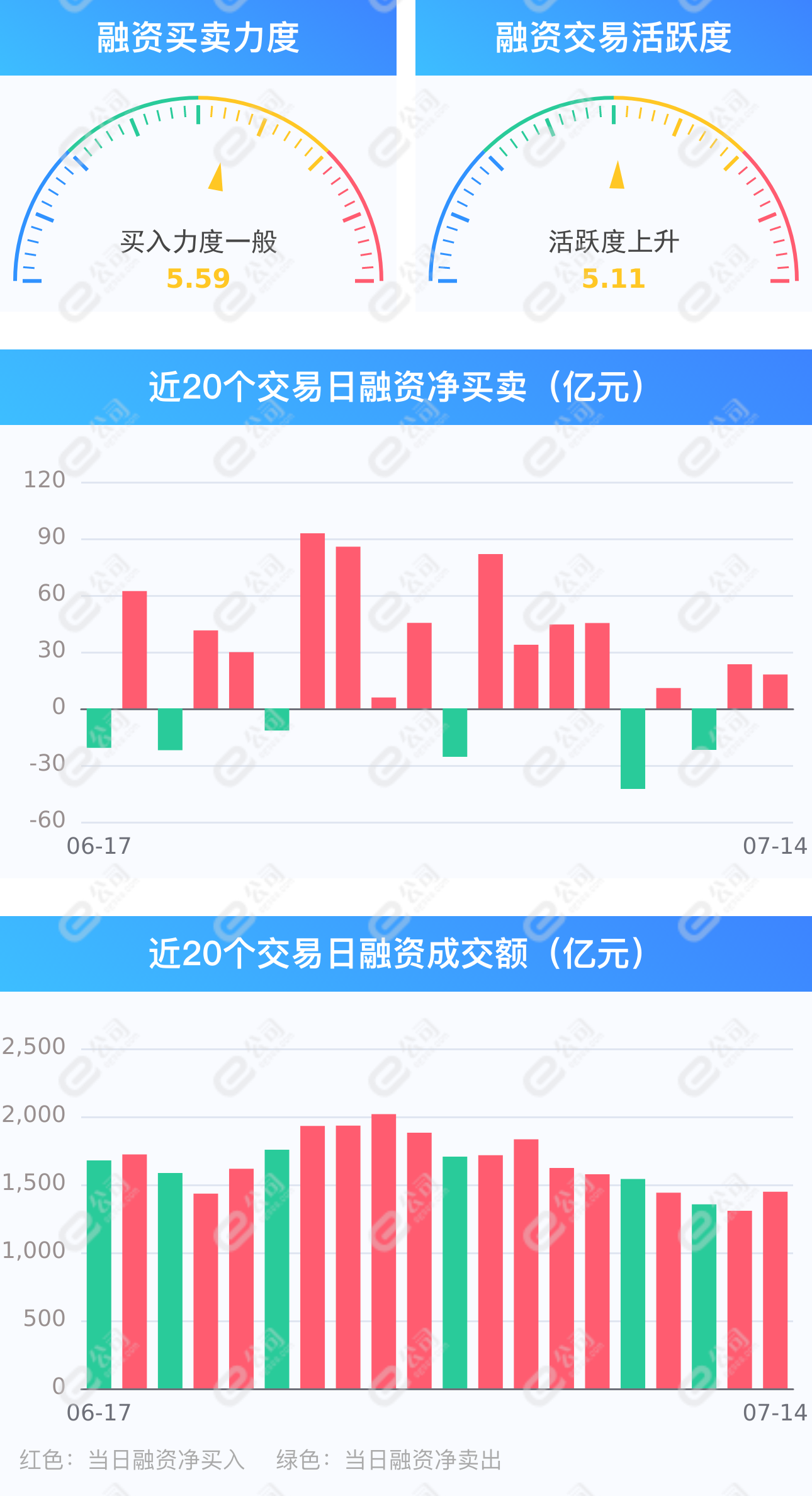证券时报e公司讯,截至7月14日,上交所融资余额报8164.58亿元,较前一交易日增加15.94亿元;深交所融资余额报7099.68亿元,较前一交易日增加1.97亿元;两市合计15264.26亿元,较前一交易日增加17.90亿元,融资交易额1446.14亿元,占A股成交额14.07%,其中融资买入额732.02亿元,融资偿还额714.12亿元,交易活跃度上升10.81%。