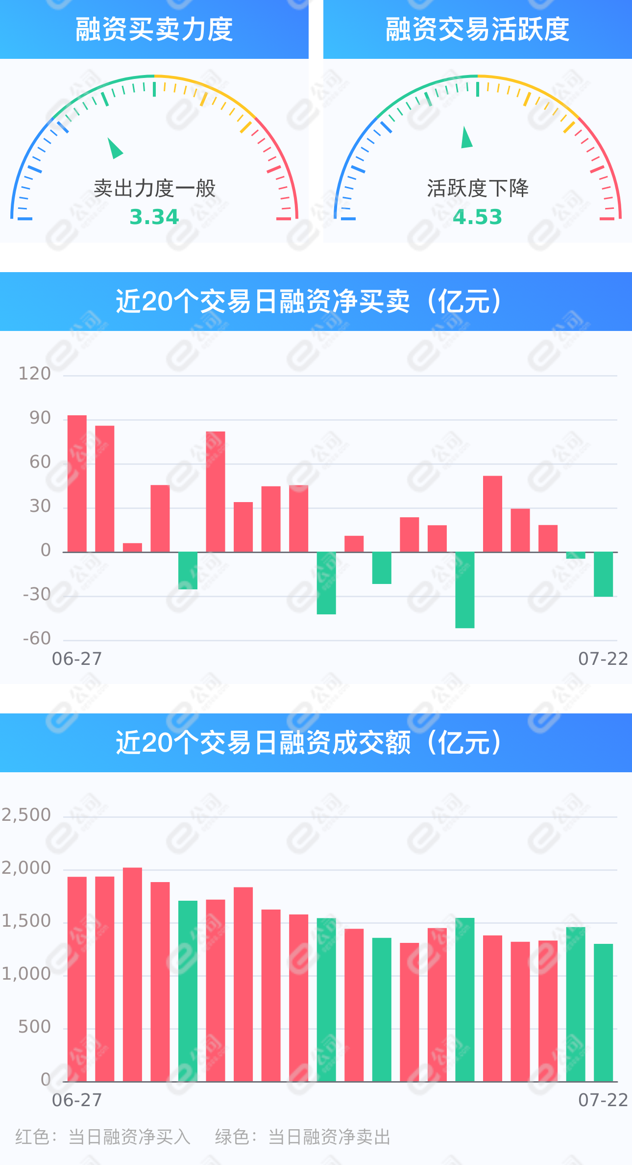 证券时报e公司讯,截至7月22日,上交所融资余额报8191.26亿元,较前一交易日减少9.94亿元;深交所融资余额报7084.25亿元,较前一交易日减少20.68亿元;两市合计15275.51亿元,较前一交易日减少30.63亿元,融资交易额1296.37亿元,占A股成交额13.85%,其中融资买入额632.87亿元,融资偿还额663.50亿元,交易活跃度下降10.93%。