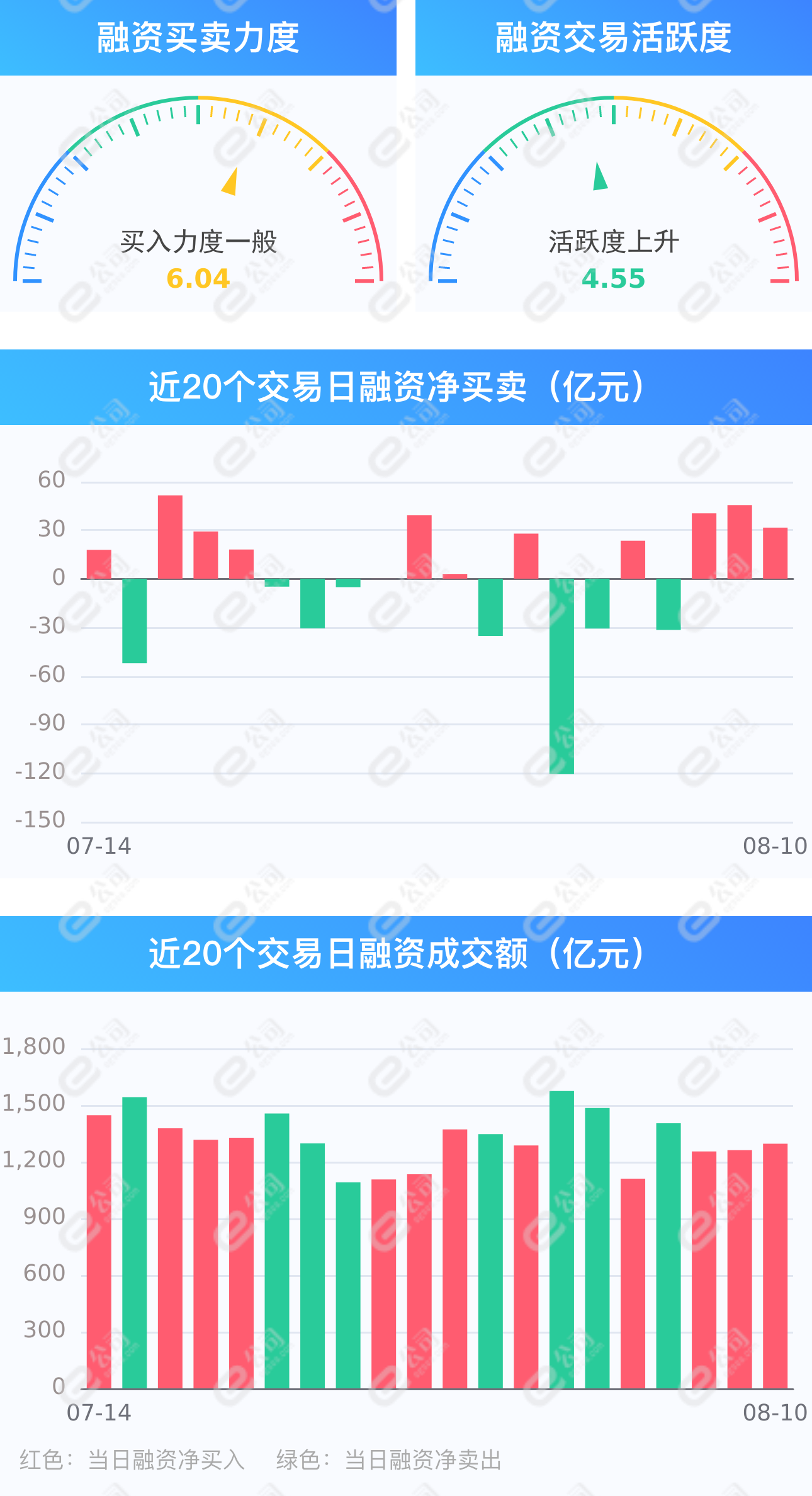 证券时报e公司讯,截至8月10日,上交所融资余额报8183.75亿元,较前一交易日增加14.13亿元;深交所融资余额报7079.73亿元,较前一交易日增加17.48亿元;两市合计15263.48亿元,较前一交易日增加31.60亿元,融资交易额1294.97亿元,占A股成交额13.40%,其中融资买入额663.29亿元,融资偿还额631.68亿元,交易活跃度上升2.70%。