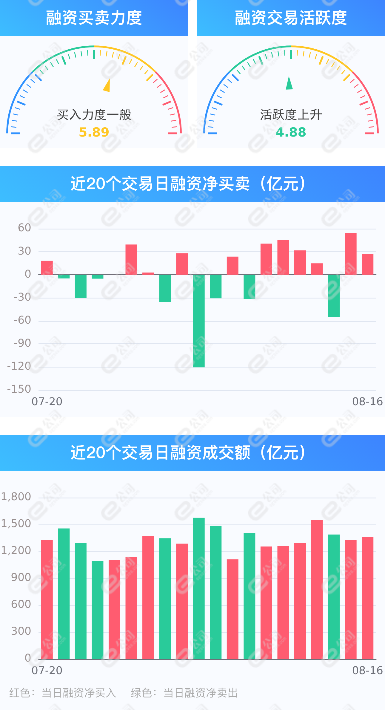 证券时报e公司讯,截至8月16日,上交所融资余额报8192.54亿元,较前一交易日增加13.03亿元;深交所融资余额报7112.30亿元,较前一交易日增加14.04亿元;两市合计15304.84亿元,较前一交易日增加27.07亿元,融资交易额1358.14亿元,占A股成交额13.31%,其中融资买入额692.60亿元,融资偿还额665.53亿元,交易活跃度上升2.62%。