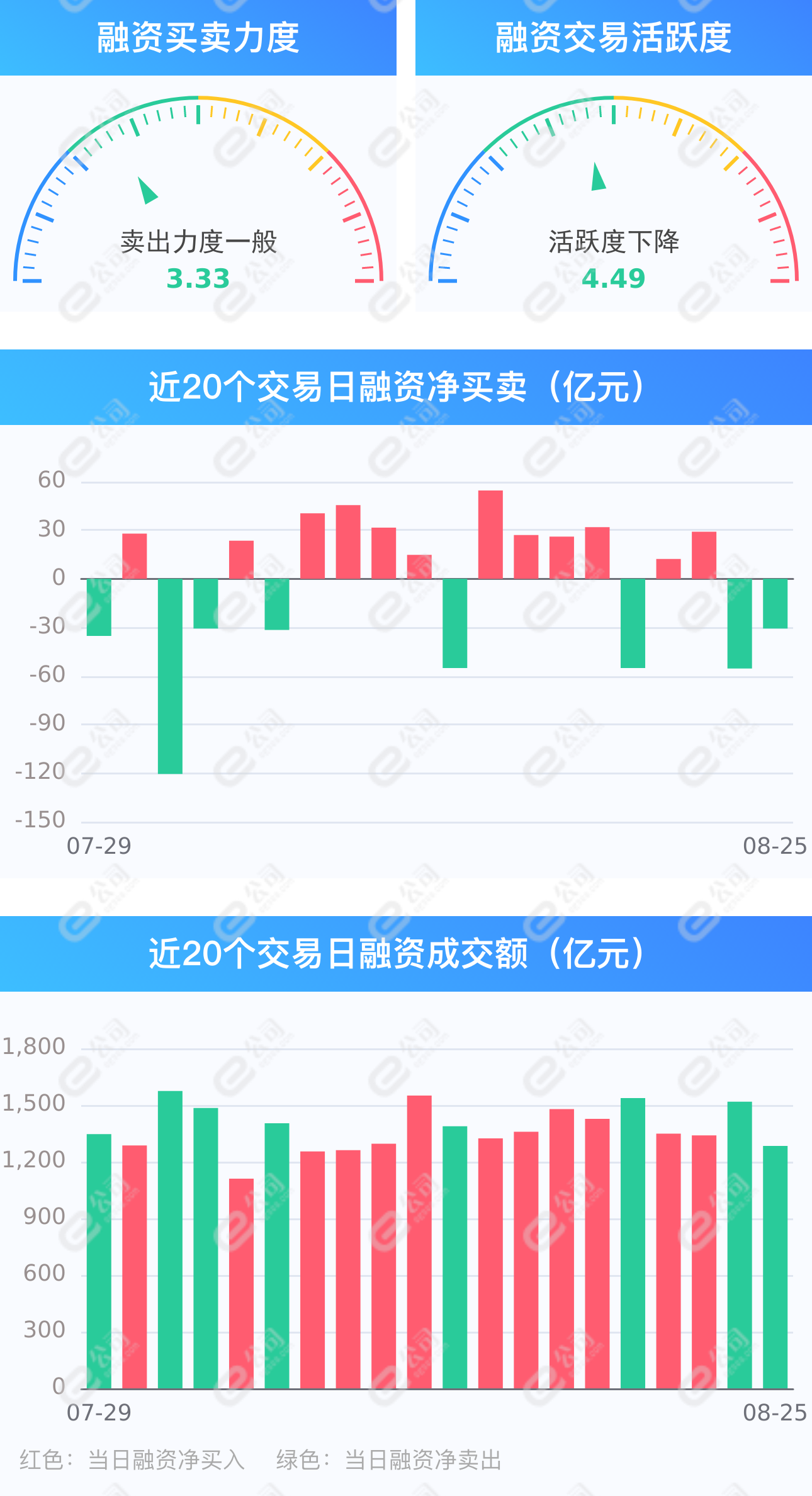 证券时报e公司讯,截至8月25日,上交所融资余额报8169.66亿元,较前一交易日减少15.55亿元;深交所融资余额报7093.21亿元,较前一交易日减少15.18亿元;两市合计15262.87亿元,较前一交易日减少30.73亿元。